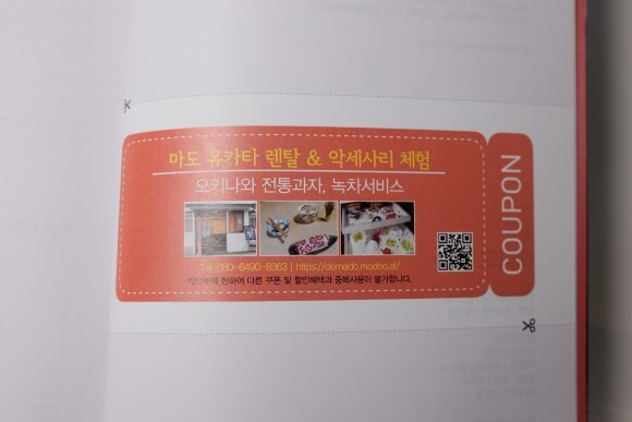그리고 마도 유카타 렌탈과 악세사리 체험 쿠폰도 담겨 있었다.