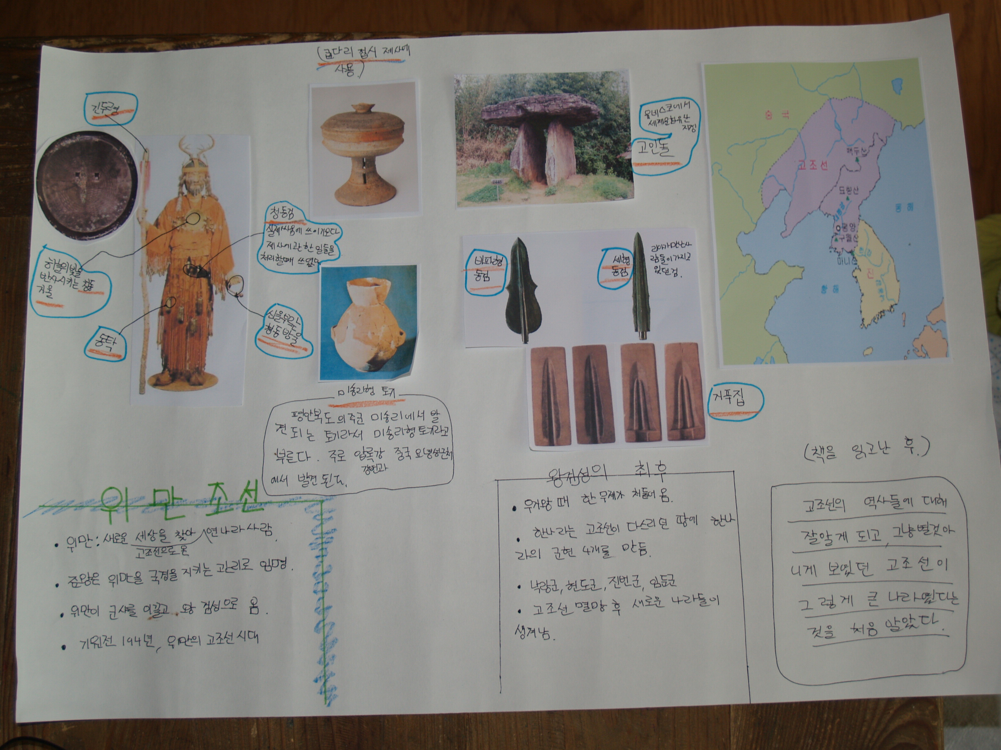 원래 우리나라의 의복은 좌임형태였으나, 중국과 문화교류를 통해 우임으로 형태로 바뀌게 되었다는 사실과 미송리형 토기를 쓰던 사람들과 굽다리 그릇을 사용하는 사람들과의 만남, 고조선시기에 중국에서 넘어온 사람들로 인해 철기가 발전하고, 곡물을 베는 낫,  땅을 파는 쇠따비, 쇠로 만든 칼같은 무기도 만들어졌고, 강력한 힘을 가진 위만이 새로운 세상을 찾아 고조선으로 넘어와 왕이 되어 고조선은 한나라와 무역을 통해 발전했다는 것도 흥미진진하였다.