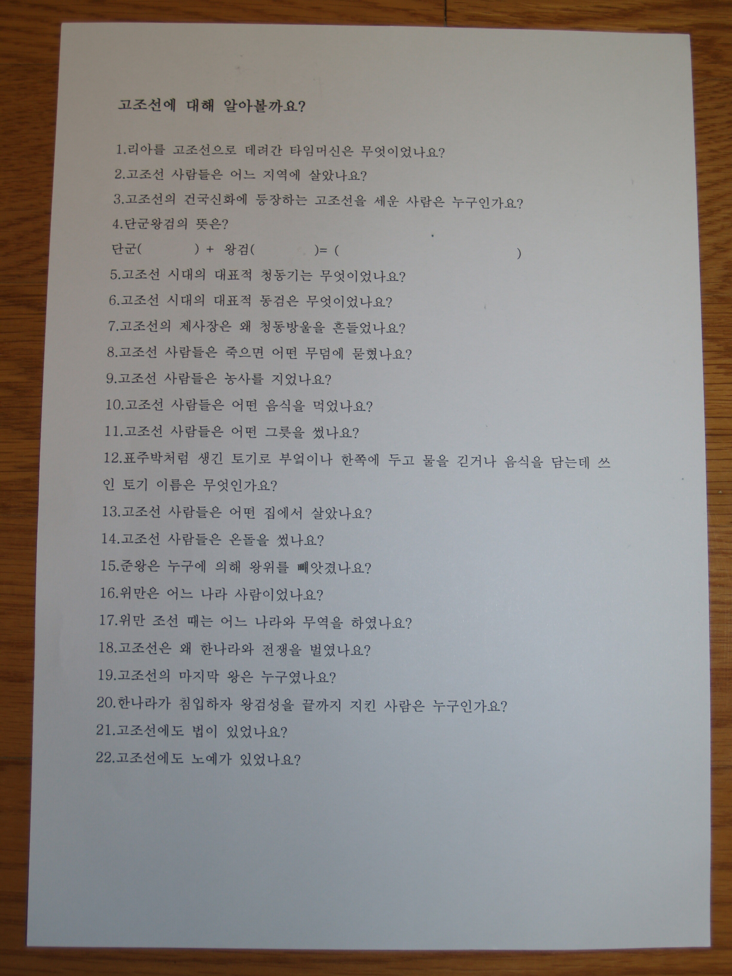 마지막으로 고조선 역사 퀴즈를 만들어보았다.