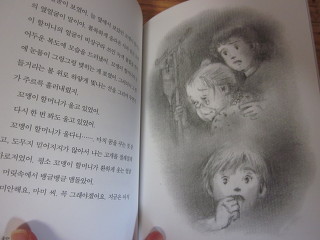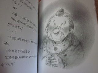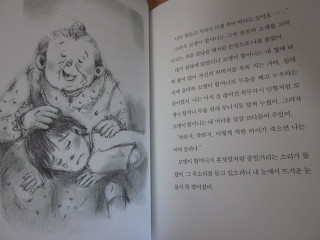 할머니 무릎에 슈는 머리를 베고 누워서 꼬맹이 할머니의 이야기를 듣는답니다. '착하지 이렇게 착한 아이가 죽으면 나는 어찌 살려나' 라는 말에 슈는 눈물을 흘려요.