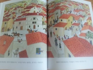'아버지의 마을 오라니' 이국적인 표지가 눈길을 끕니다. 오라니는 이탈리아 옆 사르데냐 섬에 있는 지명이예요. 아버지가 태어난 곳인 오라니에 대해 눈에 잡힐 듯 이야기 해 줍니다. 오라니로 향하는 길도 설명을 따라 같이 가는 것 같습니다. 마을에 가족이 도착하자 여기저기서 친척들이 나타났습니다. 사촌들은 미국에서 온 주인공을 이끌며 자두와 포도를 따고, 돌담에 앉아서 작은 도마뱀 구경도 했습니다.