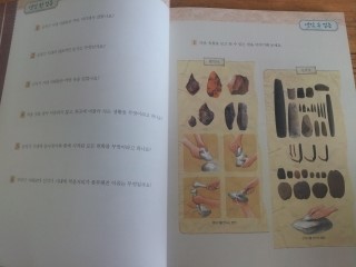 '한국사 편지 생각책' 스스로 생각하고 놀면서 공부하는 역사 워크북1 편입니다. 우선 소제목이 나오고 만화가 나오니 아이 눈길을 잡네요. 신석기 시대에는 뗀석기와 간석기를 만들었는데, 사진으로 보니 이해가 쉽게 됩니다. 동굴이나 절벽같은 곳에 동물그림을 그렸는데, 그 시대 사람들은 동물이 사냥의 대상이되기도 하고 숭배의 대상이기도 했답니다.