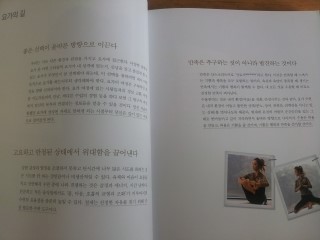 책에는 요가 이론 부터 동작에 대한 설명까지 친절하게 나온다. 초반의 요가의 재발견과 자기혁명을 읽으면 고개가 끄덕여진다. 지금 요가를 배우고 있는 입장이라 그런지 정말 글하나하나가 맞아맞아 라는 공감을 이끌어낸다. 자세에서 오는 통증은 선물이다. 요가 자세를 하다보면 당연히 통증이 느껴진다. 그 통증의 정도는 모두 다르겠지만, 통증을 두려워하지말고 행복을 이해하려면 불행을 알아야하고, 치유를 이해할려면 아픔을 알아야하며, 기쁨을 이해하려면 고통을 알아야한다고 말한다.