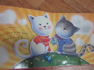 역시 팝업책의 위력은 대단하네요. 아이가 책에서 눈을 못떼네요. 생쥐인형을 고양이가 달랑달랑 들고 있어요. 아이도 생쥐인형을 만져봅니다. PULL 잡아당겨보면 꽃이 활짝 펴요. 아이도 힘껏 당겨보고 와~ 하며 예쁘다를 연발하네요. 초승달도 줄에 달랑 달랑 달려있어서 아이가 흔들 흔들 만져보며 좋아라 하네요. 글내용이 사랑하는 마음을 고백하는 글들이라 사랑이 듬뿍 담겨 있어서 아이에게 읽어 주며 사랑을 표현할 수 있어요. 네가 제일 좋아! 진짜 내마음을 보여주고 싶은데, 그럴 수 없으니깐 내 이야기를 들어 줘. 사랑 고백 하는 것도 즐겁고 듣는 것도 정말 기분 좋아지는 책이랍니다.