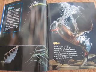 알레스카 불곰이 강물을 거슬러 올라가는 연어를 먹을려고 입을 쩌억 벌리고 있는 모습을 보니 다음 장면의 연어의 운명이 상상이 되네요. 몰총고기는 물 밖에 살아있는 곤충을 잡는데, 바로 물총을 쏘듯이 입에서 물줄기를 쏜답니다. 물총새는 물가를 살피다가 물고기가 지나가면 총알처럼 물속으로 뛰어들어 낚아챈답니다. 사진이 무척 역동적입니다.
