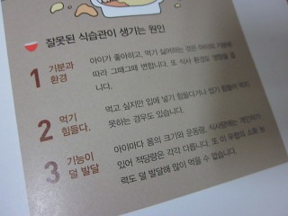 또 편식과 잘못된 식습관등 문제될 행동들의 이유를 친절히 설명해줘서 좋았어요. 씹는 이유식먹고 몸도 건강해지고 머리도 좋아지는 음식 많이 해줘야겠어요.