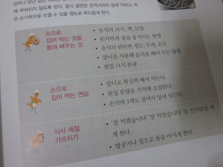 즐거운 분위기에서 다 함께 먹는다.(가족이 대화하며 먹으면 아이도 따라해 볼려고한다)