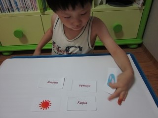 책후반에 단어카드가 나오는데요. 우리아이는 아직 수준에 맞게 3~5장 정도의 같은 그룹의 단어를 놓고 맞추기 게임을 했어요.