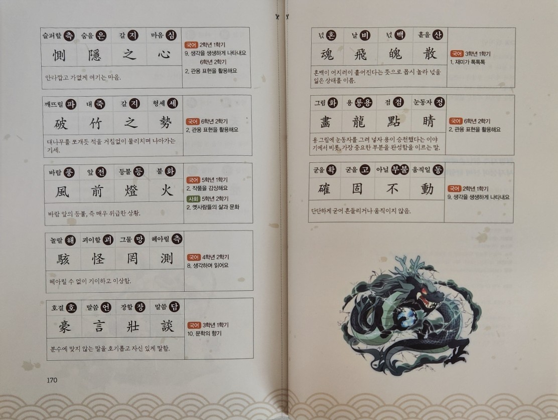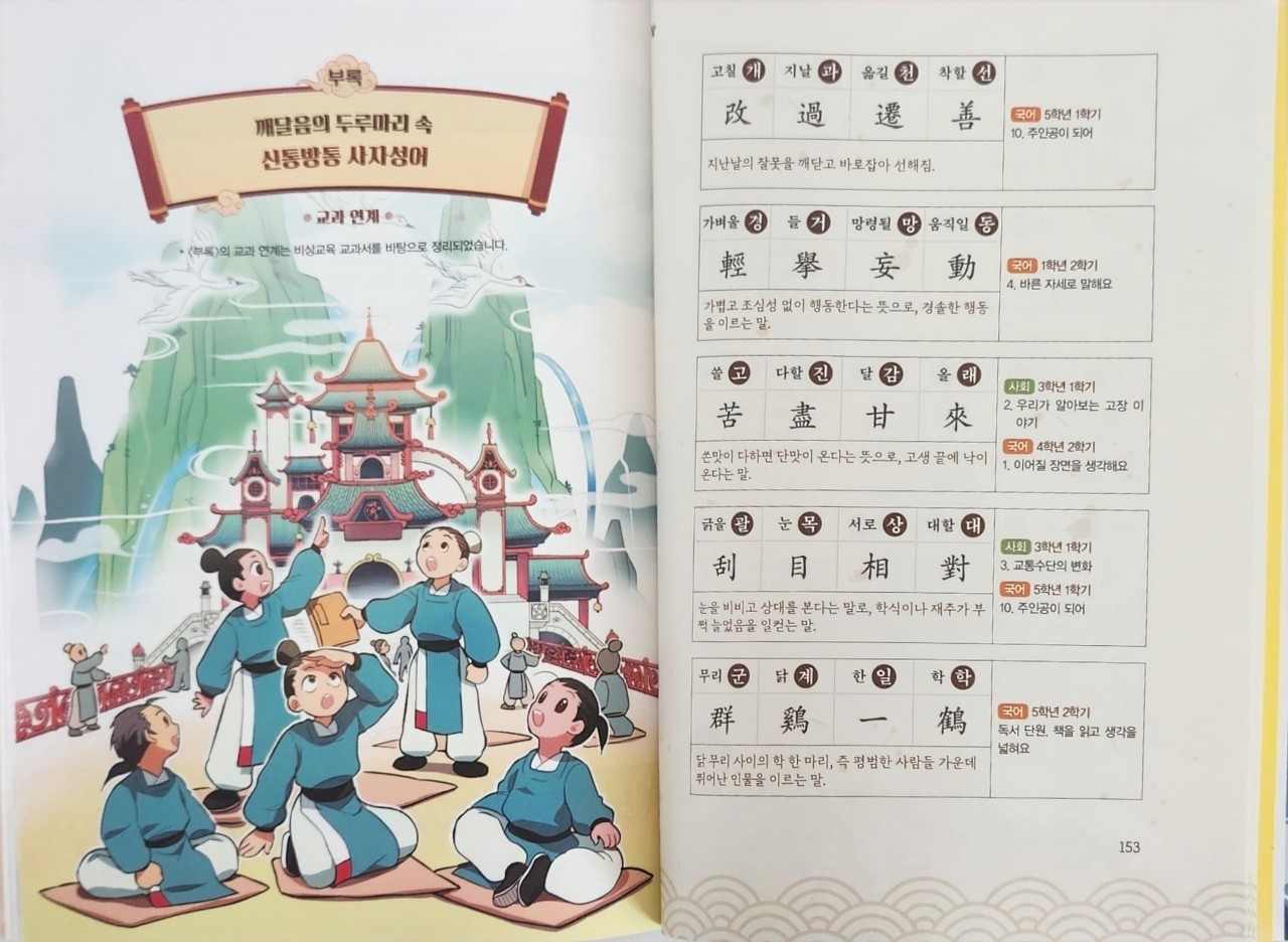 우리 아이는 고학년이 되었는데도 아직 한자를 못하고 있는데요..이렇게 책으로 한자와 사자성어를 접해주려고 하고 있어요.