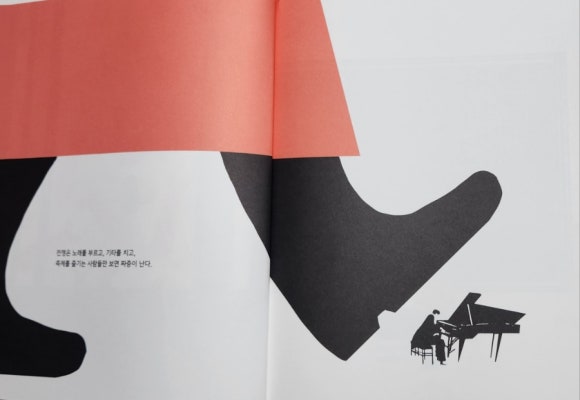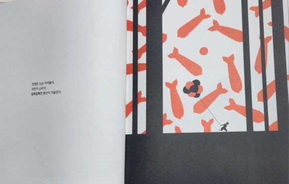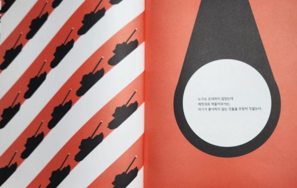 지모 아바디아 작가님은 빨강과 검정 색깔을 이용해서 전쟁의 무서움을 표현했다고 해요. 빨강은 예전부터 전쟁의 색으로 쓰였고, 검정은 죽음과 어둠을 뜻해요. 그림은 단순하지만 강렬해서 전쟁이 얼마나 무서운지 잘 느낄 수 있었어요.
