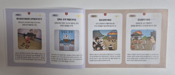 또한, 미니북은 카드에서 다루지 않은 내용을 이야기 형식으로 설명해 주어서, 아이들이 책처럼 읽으며 더 깊이 있는 역사 배경을 공부할 수 있었어요.