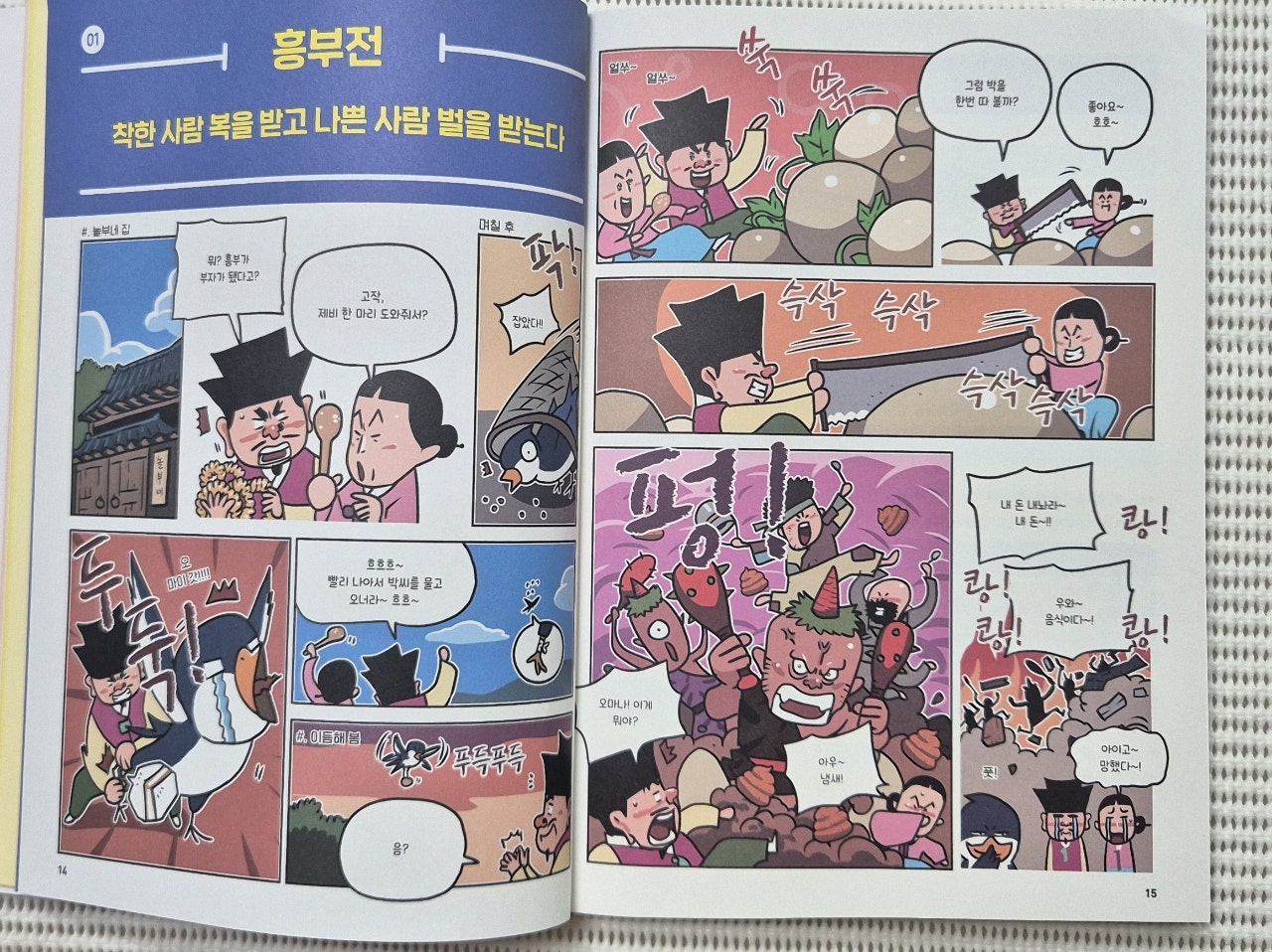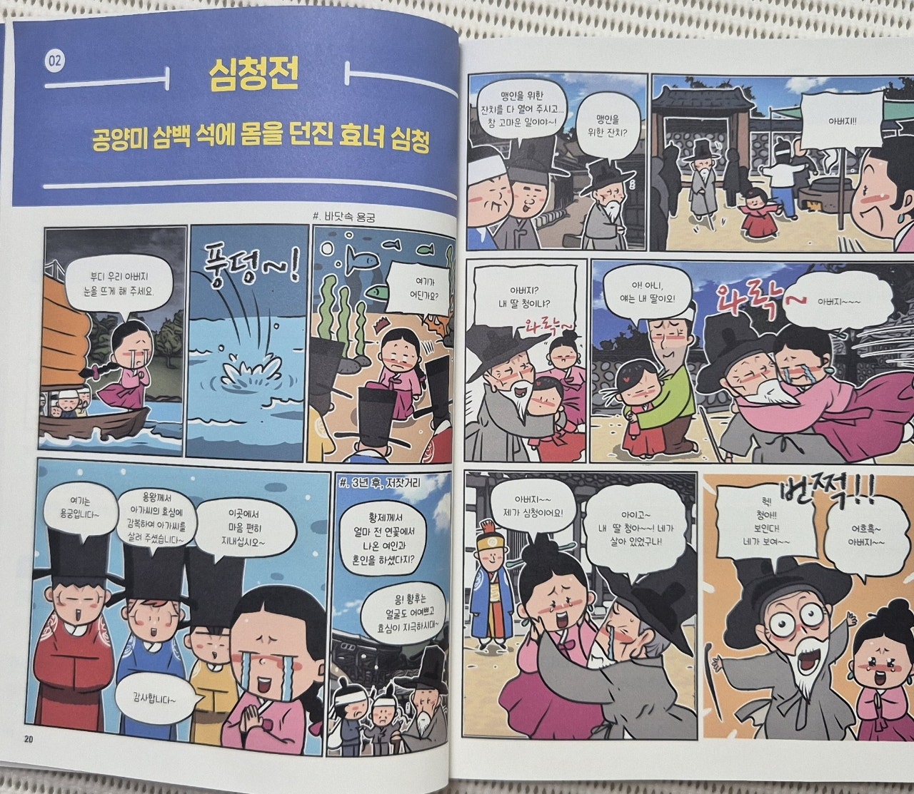 이 책의 가장 큰 장점 중 하나는 각 고전문학 작품을 만화로 풀어내어 어려운 이야기들을 쉽게 설명해 준다는 점이에요.