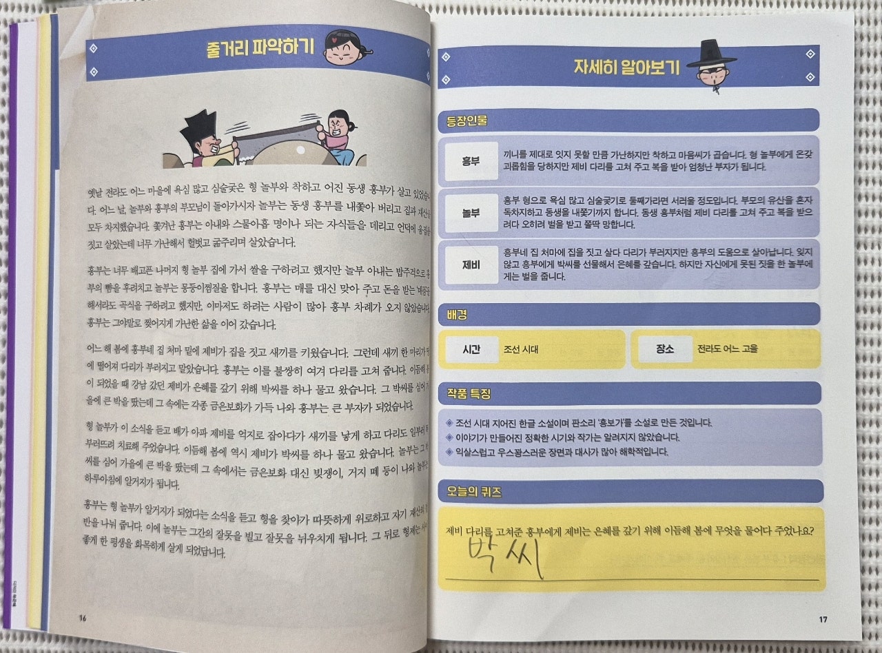 송재환 선생님은 고전문학의 원전을 먼저 읽고 나서 이 책을 활용하는 것이 좋다고 말씀하셨어요. 원전을 읽으면서 작품의 깊이와 세부적인 내용을 이해하고, 이 책을 통해 더 재미있게 학습할 수 있다고 강조하셨는데요. 원전을 읽는 과정에서 얻은 생각과 느낌을 이 책의 독후 활동과 연결시키면 더욱 풍부한 학습이 될 거예요.