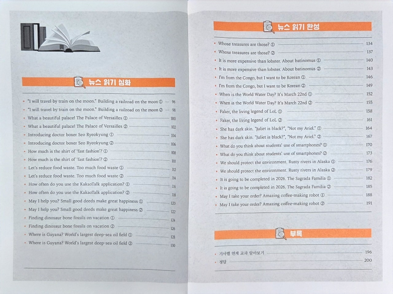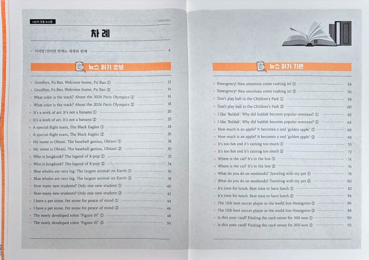 책은 크게 네 가지 단계로 나뉘어 있고, 각 단계는 초등학교 학년별로 잘 맞춰져 있어서, 자신의 영어 실력에 맞는 내용을 선택할 수 있어요. 예를 들어, '뉴스 읽기 초보'는 초등 3학년을 위한 내용으로, 영어를 처음 접하는 친구들도 부담 없이 시작할 수 있어요.
