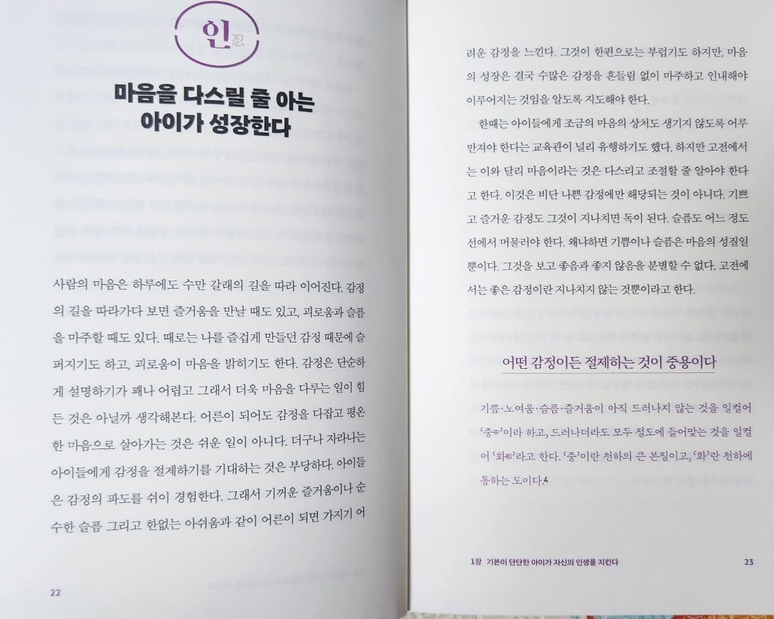 책을 읽으면서 각 장마다 담긴 고전의 지혜와 부모로서의 제 역할과 아이들에게 진정으로 필요한 것이 무엇인지 고민하는 동시에 위로도 받고 반성도 하게 되었어요.