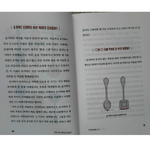책의 처음에는 숟가락부터 시작해요. 처음부터 어렵지 않고 가장 친숙한 물건부터 시작해 거부감 없이 읽을 수 있었어요.