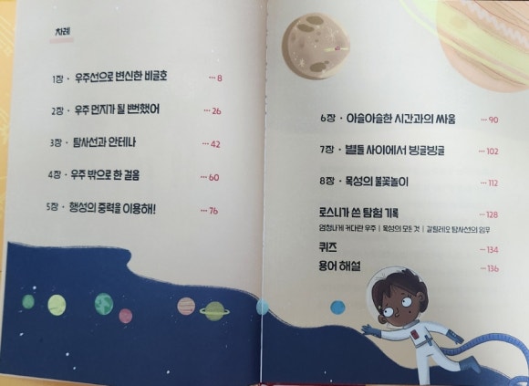 이 책은 모험과 함께 우주에 관한 다양한 지식을 자연스럽게 습득할 수 있도록 구성되어 있어요.