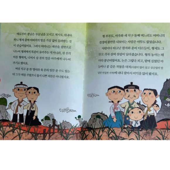 이 책은 형제 간의 우애와 가족의 화목이 얼마나 중요한지를 알려주는 두 가지 이야기가 담겨 있어요.