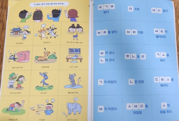 마지막에는 관용어 초성 퀴즈 카드 50장이 들어 있어 아이와 함께 퀴즈를 풀면서 재미있게 복습할 수 있어요.