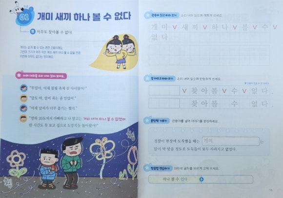 각 주제는 10가지 관용어로 나뉘어 있으며, 저학년은 하루에 1과씩, 고학년은 하루에 2과씩 진도를 나가면 좋다고 해요.