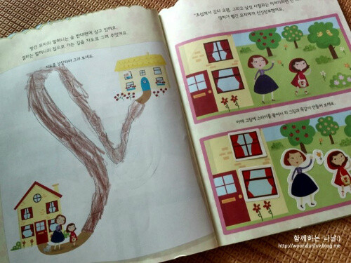 스티커놀이북을 하기 전에 먼저 빨간모자책을 읽고 시작했답니다
