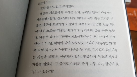 인류사의 시작은 나무위에서 시작되었으나, 게으른이들이 나무를 잘 타지 못함에도 불구하고 잘먹고 잘살아