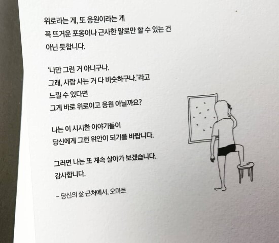 누군가를 위로하는건 그저 옆에 있는 누군가의 온기만으로도 충분한 순간이 있다는 것.
