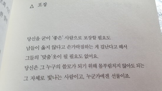 워낙 SNS로 소통이 활발한 분이기에 책을 읽는내내 작가의 글이 아닌 말을 듣는것처럼 뭔가 생생한