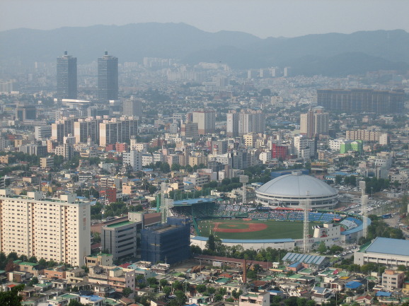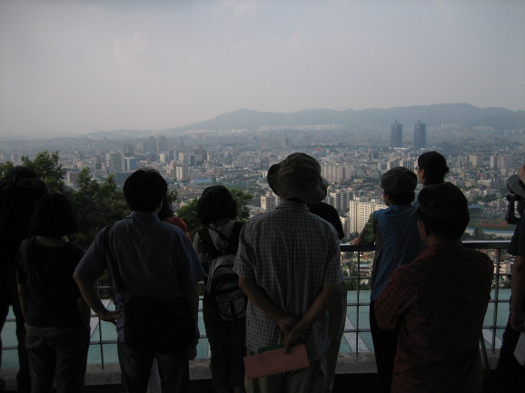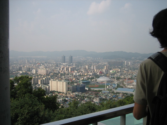십분쯤 더 걸으니 보문산 전망대가 보인다. 얼마 걷지도 않았는데 전망대라니. 얼마나 보일까 싶었는데 역시 전망대는 전망대인지라 시야가 확 트인다. 한밭종합체육관에서 열리는 야구경기가 한창이다. 아이들의 애국가 소리, 관중들의 환호소리가 여기까지 생생하게 들린다. 전망대에서 대전을 내려보니 저 넘어서 산내, 저기는 동구, 대전역, 저기는 중앙로, 나무로 가려진 곳은 서구, 저쪽은 유성. 대전의 모습이 눈에 잡힌다. 야경은 더 좋겠다, 얘기하니 들려오는 대답. 보문산이 성폭행 1위 발생지역이라며 혼자서는 절대 밤늦게는 금물이란다. ;