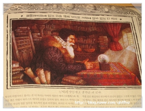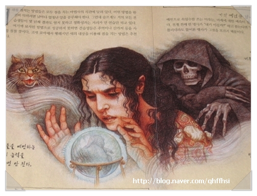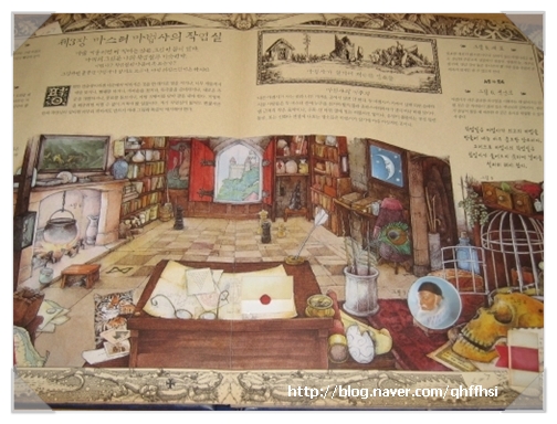 마법사의 작업실에 대한 이야기들이 나온다. 도서관, 옷장, 수정구슬, 해골등의 역할등에 대해서 하나하나 이야기해주고 있다. 마법사의 작업실을 이렇게 멋드러지게 그려놓다니...들어가고픈 충동을 느끼게 한다.