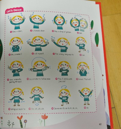 요렇게 악보 옆쪽에 가사에 맞는 동작을 그림으로 알려주고 있어요.