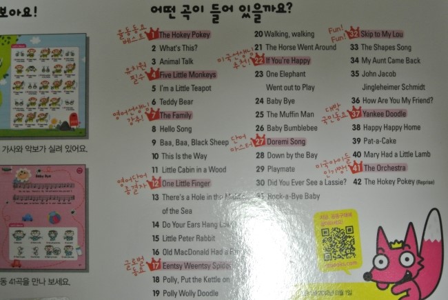 총 42개의 다양한 곡이 수록된 영어율동동요.