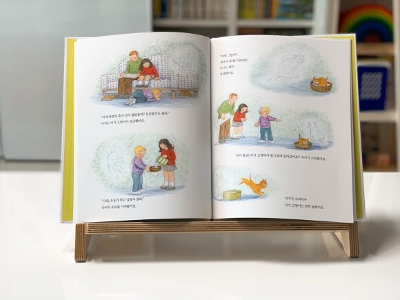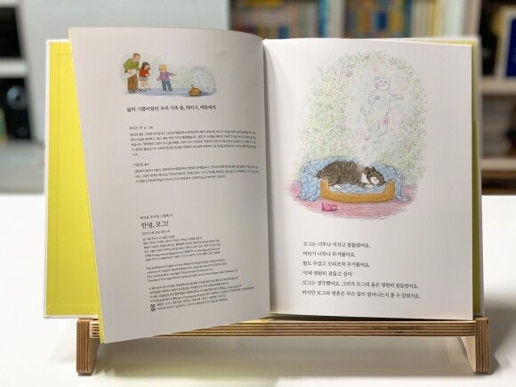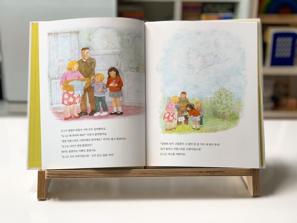 요즘 저희 첫째는 사람이 죽으면 어떻게 되는 거냐고, 엄마랑 아빠가 죽으면 어떡하냐며 특히 죽음에 관심이 많아요. 그런 아이와 함께 읽으면서 엄마랑 아빠가 떠나더라도 너희를 사랑하는 마음은 변하지 않을 거라고, 이렇게 모그처럼 항상 너희를 지켜봐줄 거라고 따뜻하게 이야기해주었습니다.