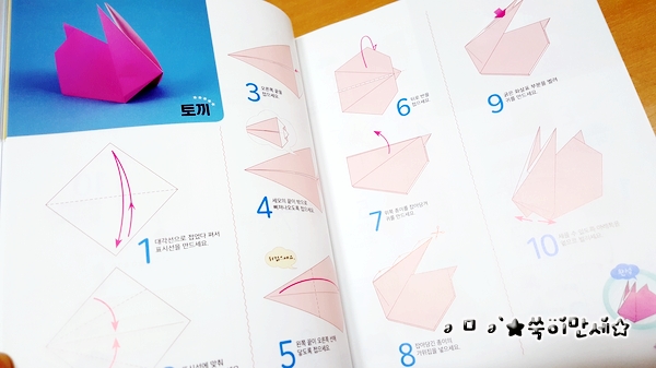 고로.. 우리 집에 있는 자매들에겐 쉬우면서도 알고 있던 종이접기 복습과 함께 새로운 종이접기 방법들이 많아  오랜 시간 책에 빠진듯하다.