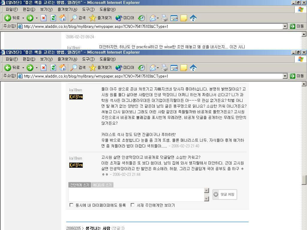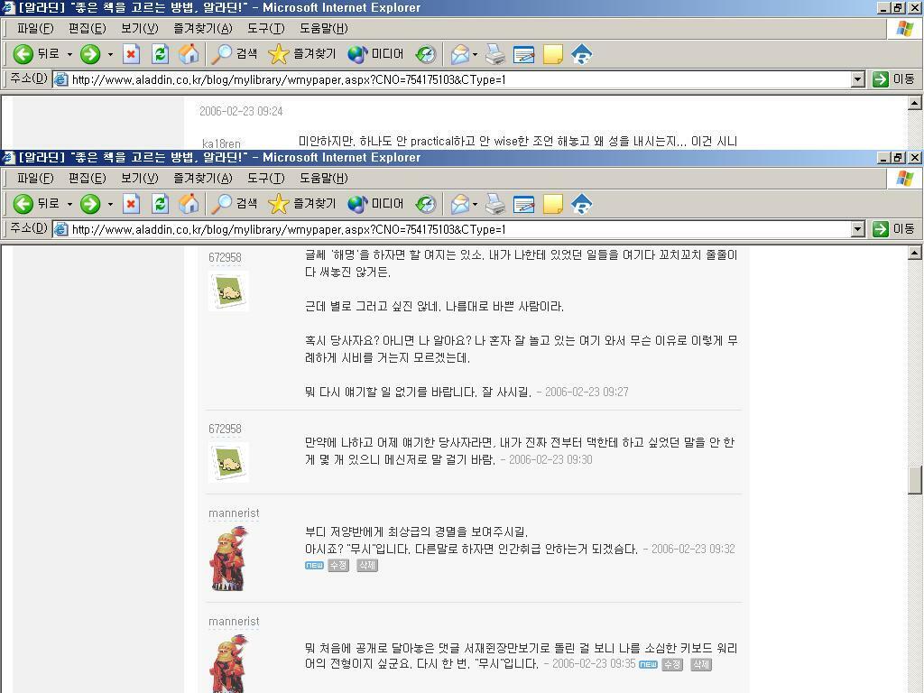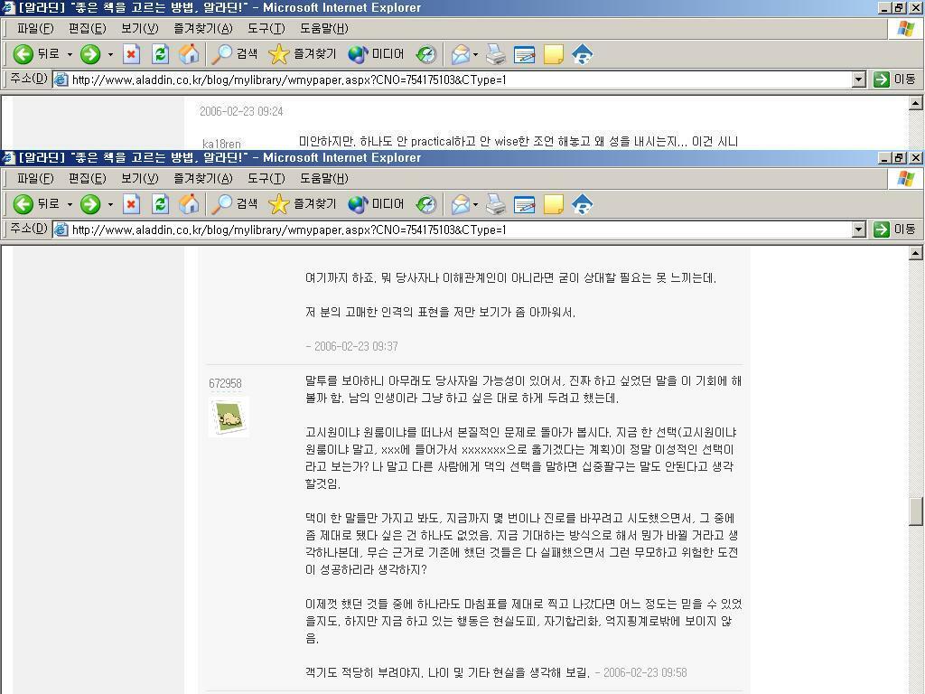 아, 막상 글을 쓰려니, 저 위의 '부탁드립니다! 알라딘 마을지기를 좀 봐주세요~' 때문에 마음이 아픕니다만,